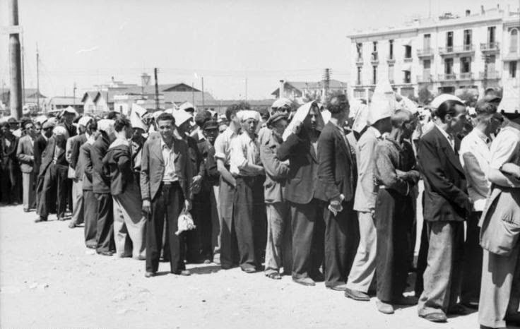 Judeus reunidos na Praça Eleftherias para serem registrados e, posteriormente, enviados para trabalhos forçados