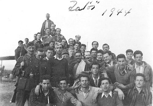 Isaac Jacob Menache (primeira fileira, em pé, o terceiro a partir da esquerda) com o grupo do Exército, 1944.
