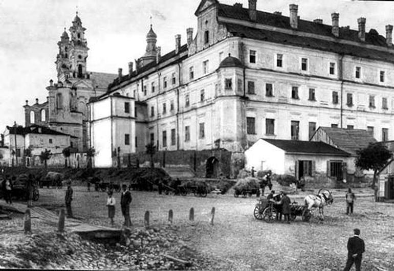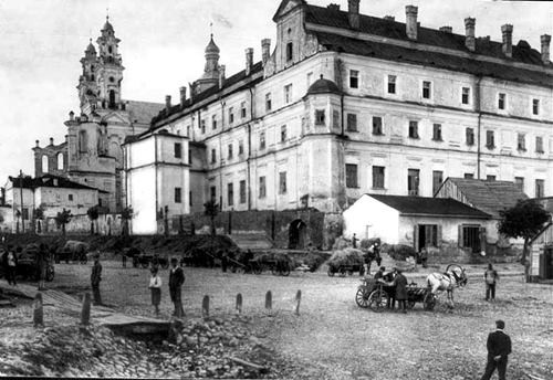 Igreja dos padres jesuítas e da faculdade em Pińsk, c. 1920. A igreja foi fundada em 1646 pelo príncipe polonês A. St. Radziwill quando a Fronteira Oriental (Kresy) e Pińsk faziam parte da Polônia.
