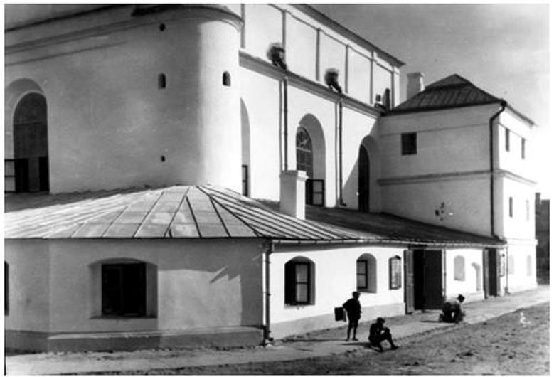 Grande sinagoga de Pińsk, primeiras décadas do século XX. Fonte: Arquivo do Memorial Yad Vashem, Jerusalém, Israel.