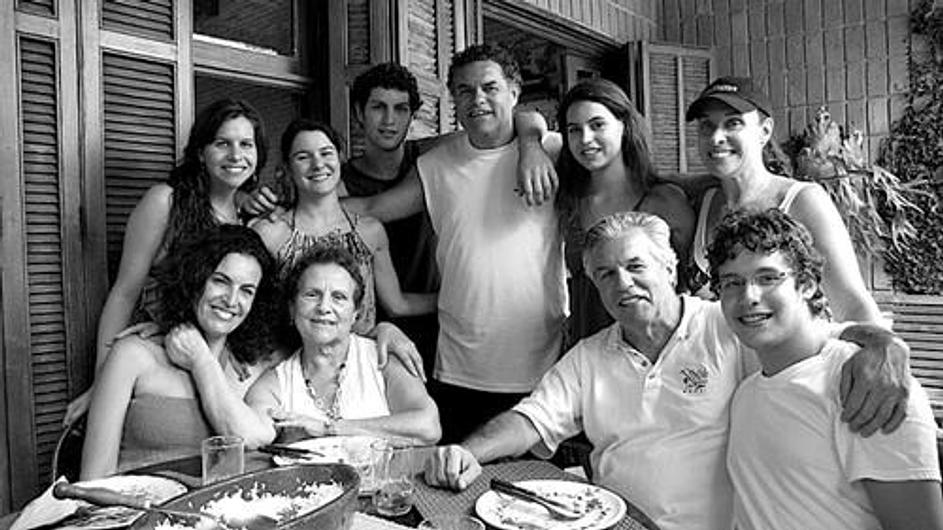 Halina, aos 80 anos, com os filhos Max e Uri, as noras Vivian e Deisi e os netos Keren, Tali, David, Ilana e Marcel Eli