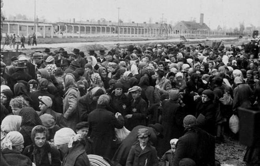 Desembarque e seleção dos judeus na plataforma do campo de Auschwitz-Birkenau