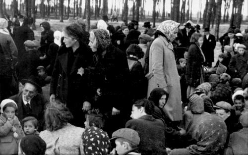Desembarque e seleção dos judeus na plataforma do campo de Auschwitz-Birkenau