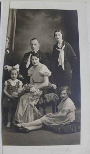 David Hainsztajn, tio materno de Ita Gliksman, com sua esposa. Ita é a primeira criança à esquerda.