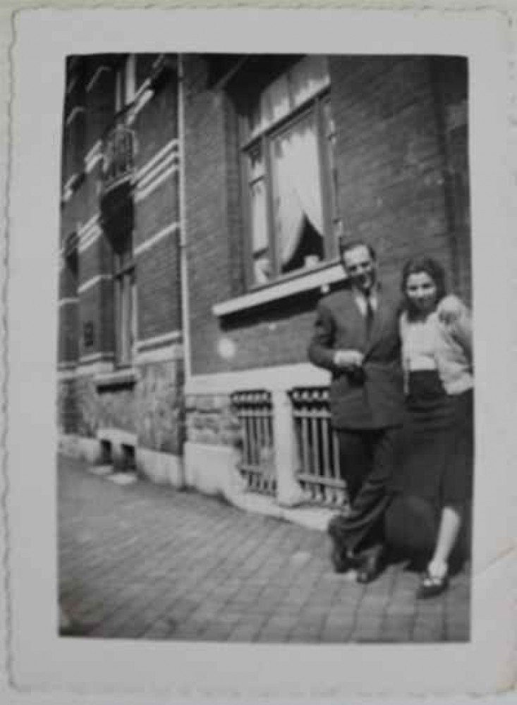 Ita Gliksman e um primo da Suécia, em frente a sua residência na Bélgica.