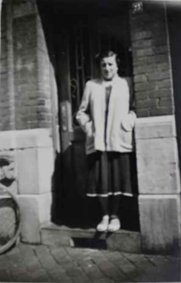 Rywka Gliksman, mãe de Ita Gliksman, no quintal de sua casa.