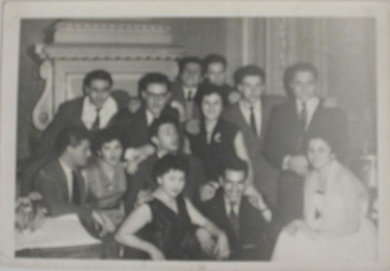 Da esquerda para a direita: Ita Gliksman (útima na foto) numa festa com a juventude sionista rica de Liege, na Bélgica.