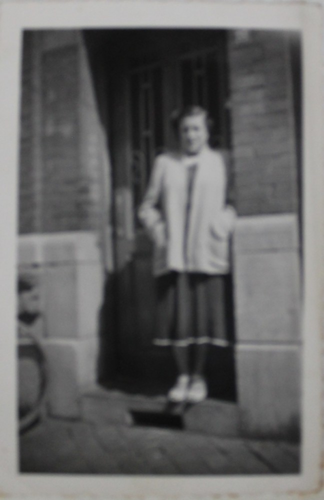 Rywika Gliksman, mãe de Ita Gliksman, em frente a sua residência na Bélgica.