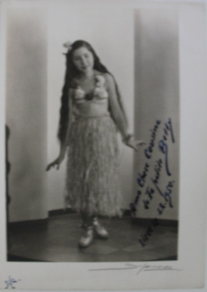 No lado esquerdo inferior da foto consta a palavra Ida, e no direito inferior, uma assinatura. Mais acima, no lado direito da foto, escritos em francês: Ama Cheze Cousine de la petite Betty. Liece Le 1.2.1950.