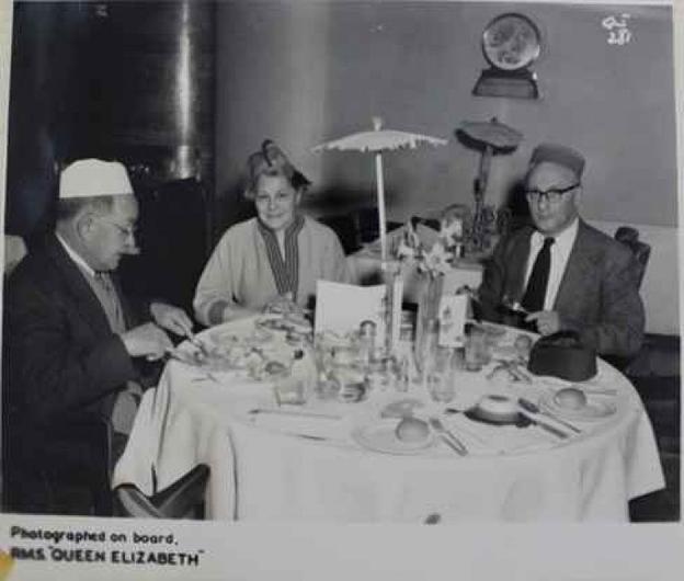 A direita, David Hainsztajn e esposa, a bordo do navio Rainha Elizabeth.