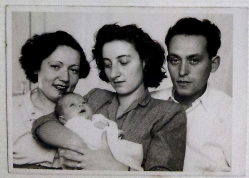 Moshe Anglister e sua esposa Lola Anglister, com sua filha Amy em Israel 1950. Ao lado de Lola uma mulher não identificada.