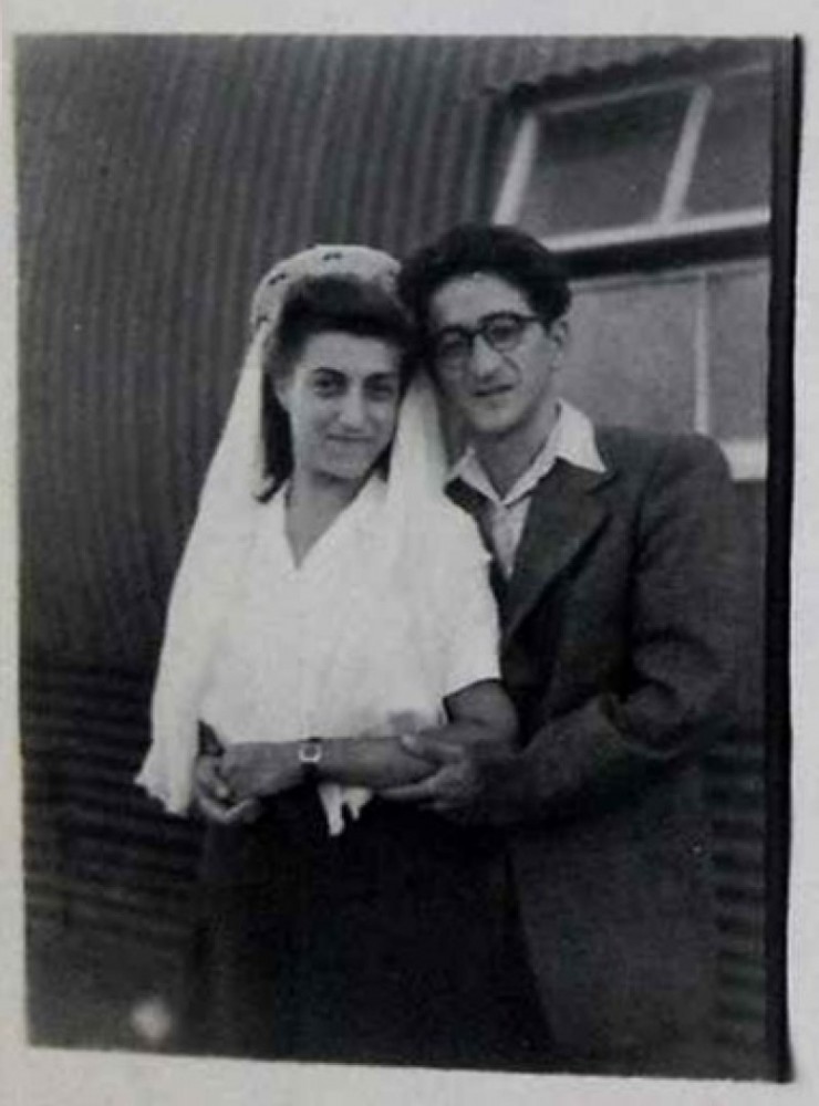 Casamento de Dora Rapaport e Yossef Henefeld no campo de Refugiados em Chipre.