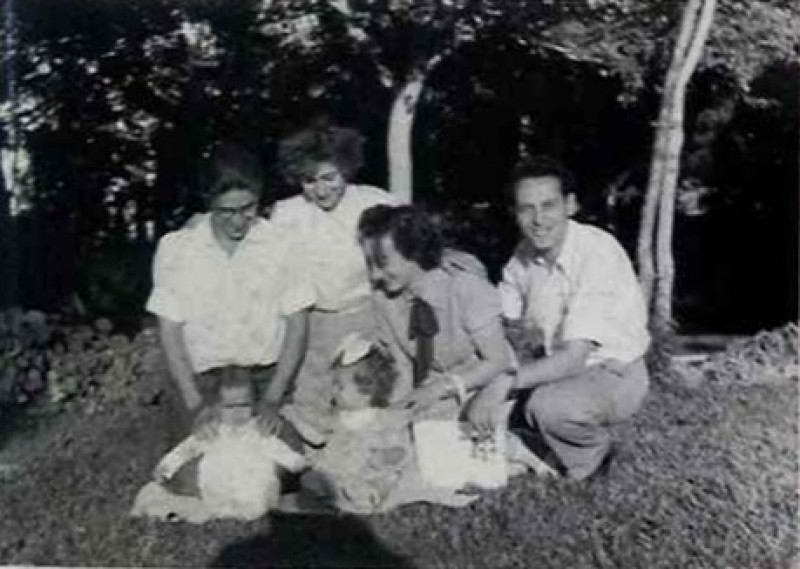 Da esquerda para direita: Famílias Henefeld e Anglister, com Sarale Henefeld e Amy Anglister, que eram primas.