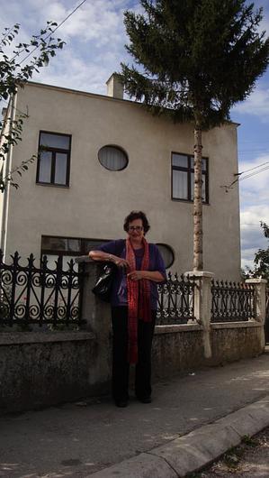 Fotografia tirada em frente a antiga casa da família de Ruth Sprung Tarasantchi, em Bugojno, por ocasião da viagem realizada em 2010.