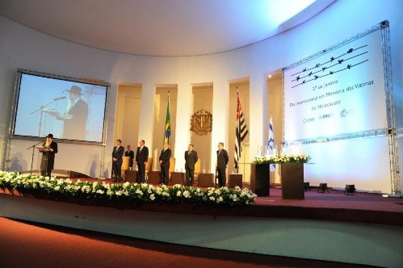 Dia da Memória do Holocausto. Solenidade do dia 27 de janeiro, no Palácio dos Bandeirantes. A solenidade foi organizada pela Confederação Israelita do Brasil e a Federação Israelita do Estado de São Paulo, com o apoio da Congregação Israelita Paulista.