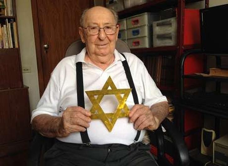 Aleksander Henryk Laks segurando uma Estrela de David dourada.