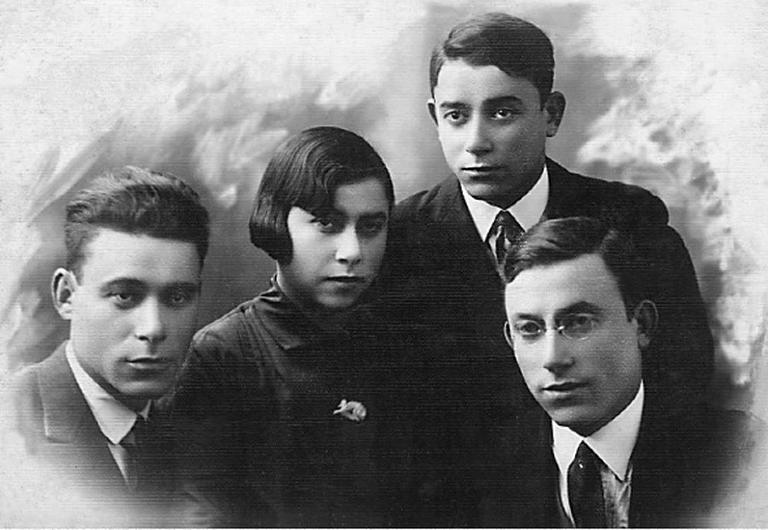 Os irmãos de MalKa Milchtajch (da esquerda para direita): Joseph, Mindla, Chaim e Jacob, em Chelm, Polônia, meados da década de 30. (Da esquerda para direita).