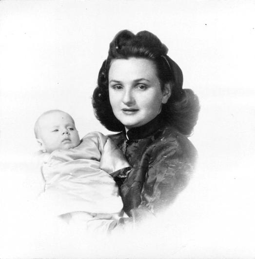 Dusia Czertok com o recém-nascido Arie Czertok, Xangai, 1948.