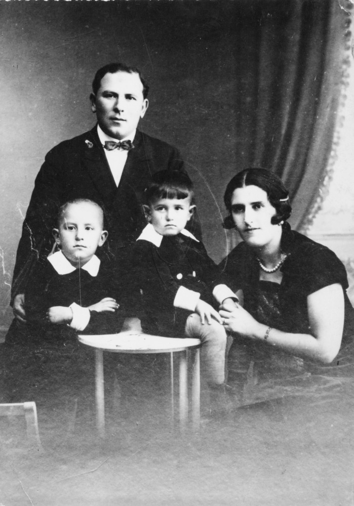 Guedala e Ida Czertok, avós paternos de Arie Czertok, com os filhos Arie e David. Lida, Polônia, c. 1926.