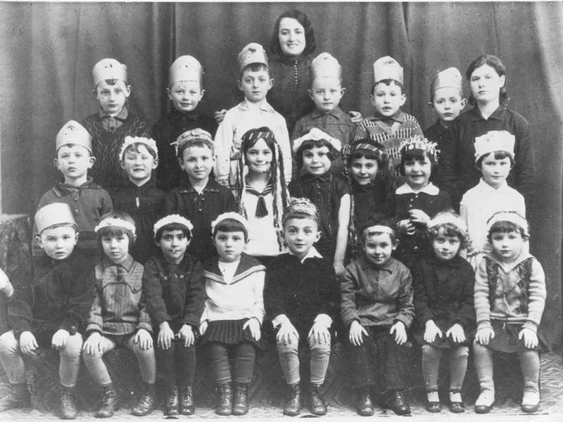 Dusia (ao centro) com os coleguinhas de classe do pré-primário, Polônia, 1932.