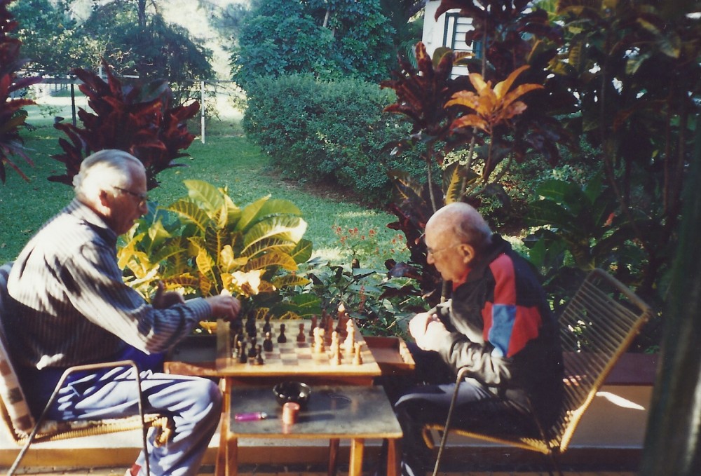 Partida de xadrez com Licco Max Haim e um amigo Checo Wolf-Deutch. Sitio em Americana, São Paulo, 1995.