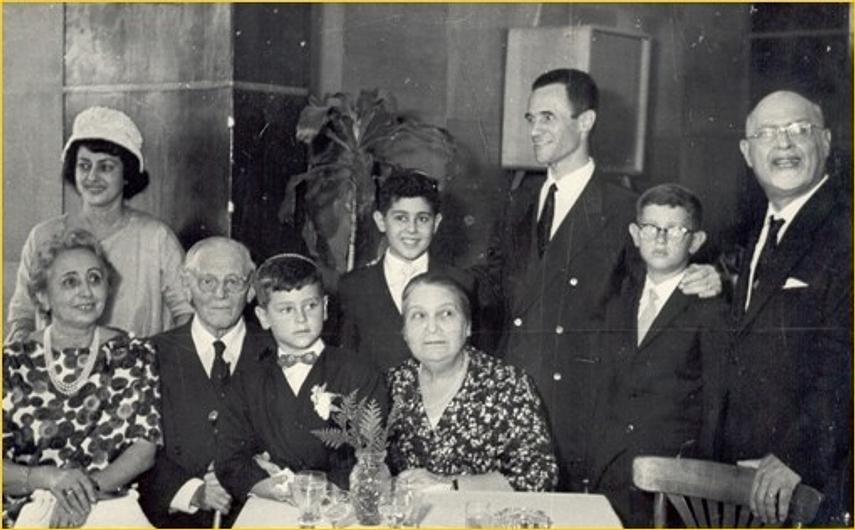 Em pé: Franca, Hugo, Otto, Raul e Guido Cohen (pai da Franca).