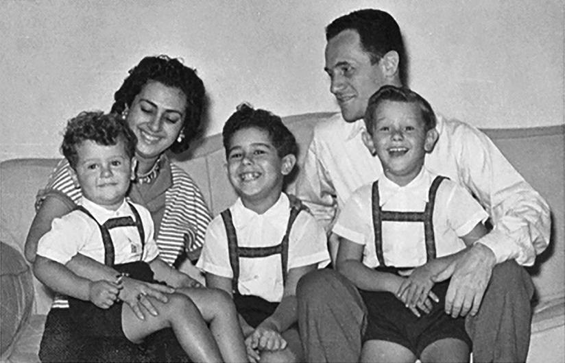 Franca e Otto Gottlieb com os filhos: Marcel Bernardo (à esquerda no colo de Franca), Hugo Emílio (no meio) e Raul Cesar (à direita, no colo de Otto). Rio de Janeiro, c. 1956.
