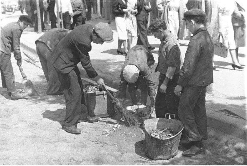 Judeus durante trabalhos forçados em obras públicas. Bialystock, Polônia, 20.06.1941.