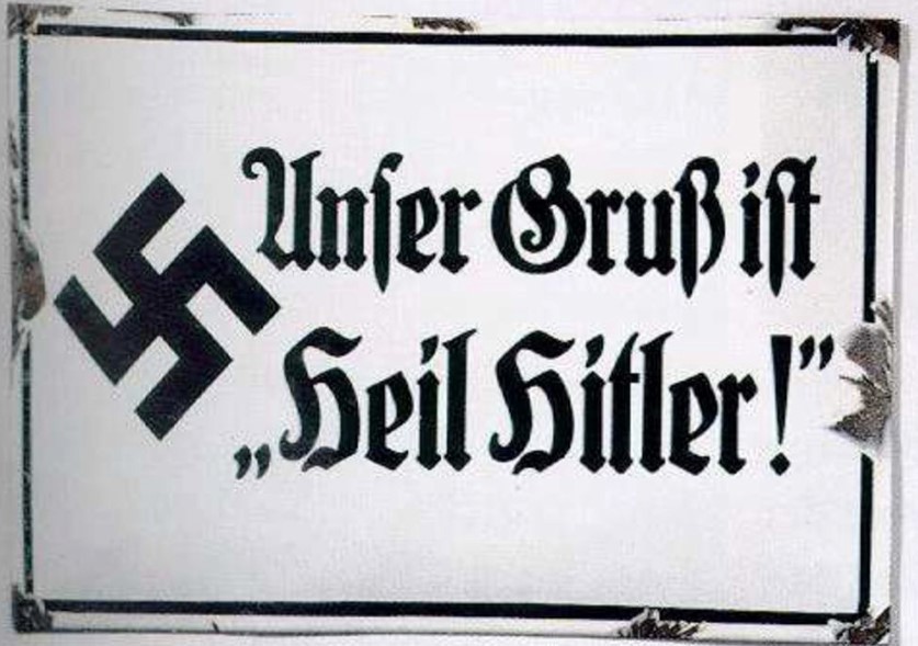 Placa com dizeres antissemitas espalhada por toda a Alemanha anunciando que os judeus eram indesejados.