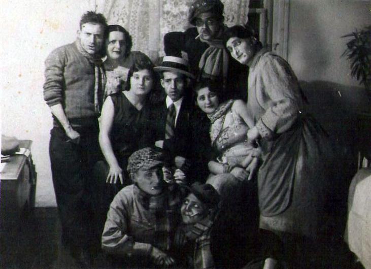 Pinchas Rolnik, tio de David, residia em Wlodawa, que fica cerca de 40 km de Chełm, onde dirigia o grupo teatral Studium Dramatycznie – da organização Tarbut. Na fotografia, um grupo de atores que participaram da peça Tzum Toire, apresentada duas vezes na cidade: em 2 e 9 de fevereiro de 1935. O grupo teatral era muito ativo e conhecido na cidade e nas redondezas onde se apresentava. O fotógrafo A. Kirman registrava as apresentações.