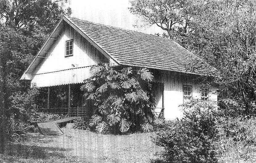Casa construída para abrigar estagiários judeus alemães, que nunca conseguiram os vistos para o Brasil. Fazenda Jaú, Rolândia, década de 1930.