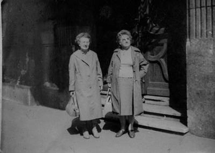 Frida Furst Reiner (mãe de Alice Farkas) e sua irmã Irene na entrada do metrô