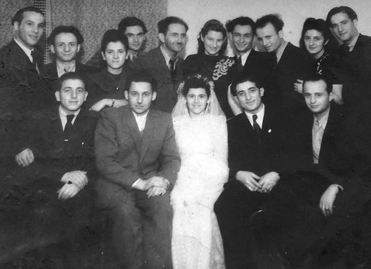 O grupo de Grynszpan no casamento de Leon Lerner (sobrevivente da revolta de Sobibor) com Mania