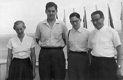 Família Adler (a partir da esquerda): Lieselotte Adler, um funcionário da fábrica Estrella, o jovem Mário Arthur Adler e o seu pai, Siegfried Adler. Salvador, 1957.