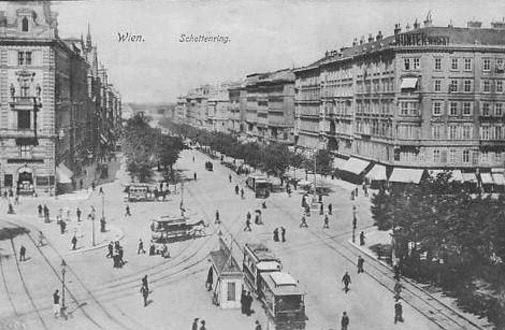 Rua Schottering, em Viena, c. 1900, onde ficava a residência dos Zweig