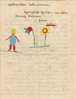 Desenho de Frederico na carta que ele escreveu aos seus pais durante o período que esteve no Lar das Crianças