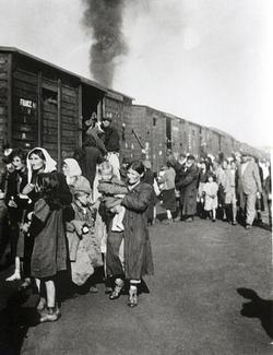 Trem lotado de prisioneiros a caminho de Auschwitz